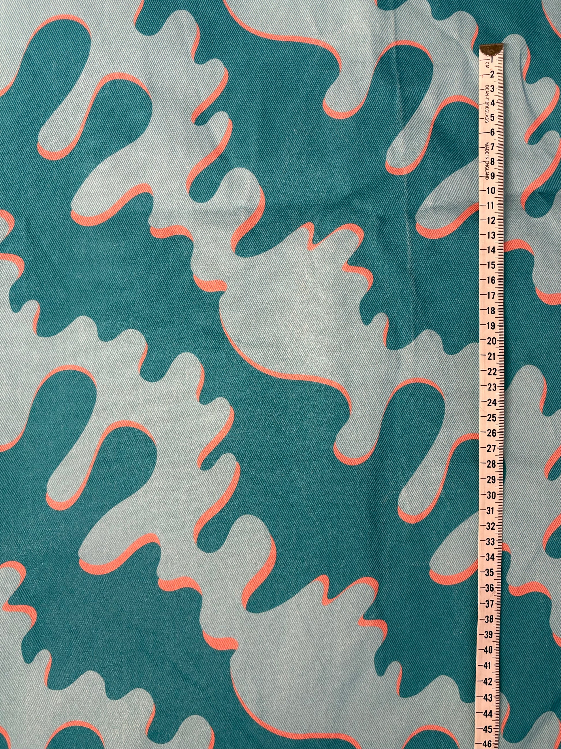 Metervare av stoffet Drypp Denim, designet av Mari Melilot. Forhåndsbestilles innen 10. februar og forventes på lager mot slutten av februar (mer info kommer på epost ved bestilling).
